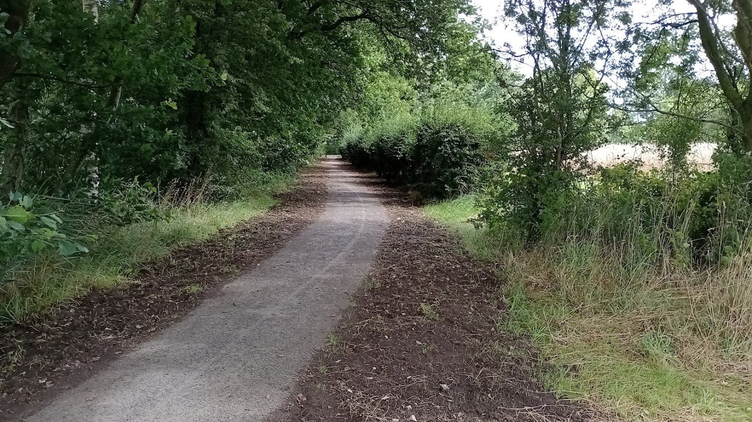 Der Weg zum Aussichtshügel wurde aus DurEko-mix BIO angelegt, einem wasserdurchlässigen, halbverfestigten Belag mit natürlicher Optik. Das Material bietet eine ebene, stabile und geschlossene Oberfläche, wodurch der Weg hervorragend für Rollstuhlfahrer geeignet ist, aber auch für Wanderer und andere Besucher angenehm zu begehen ist. Auch bei Regen bleibt der Weg gut begehbar und frei von Pfützen.
