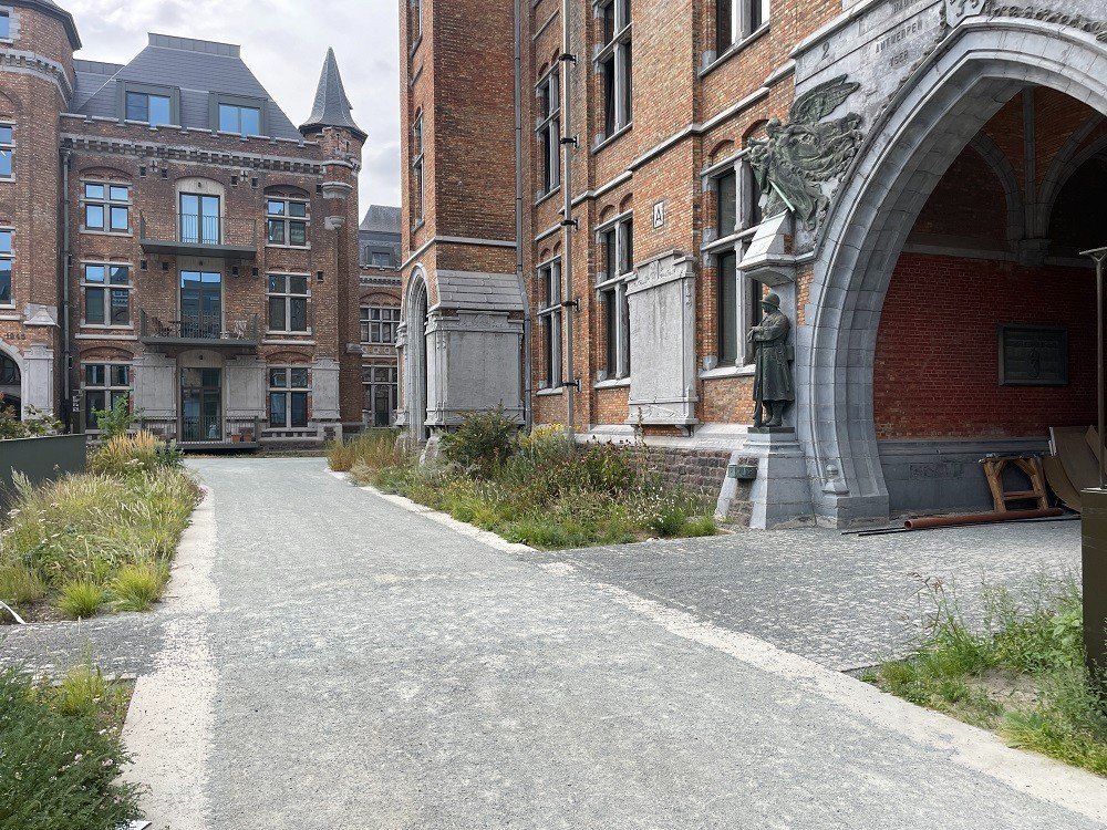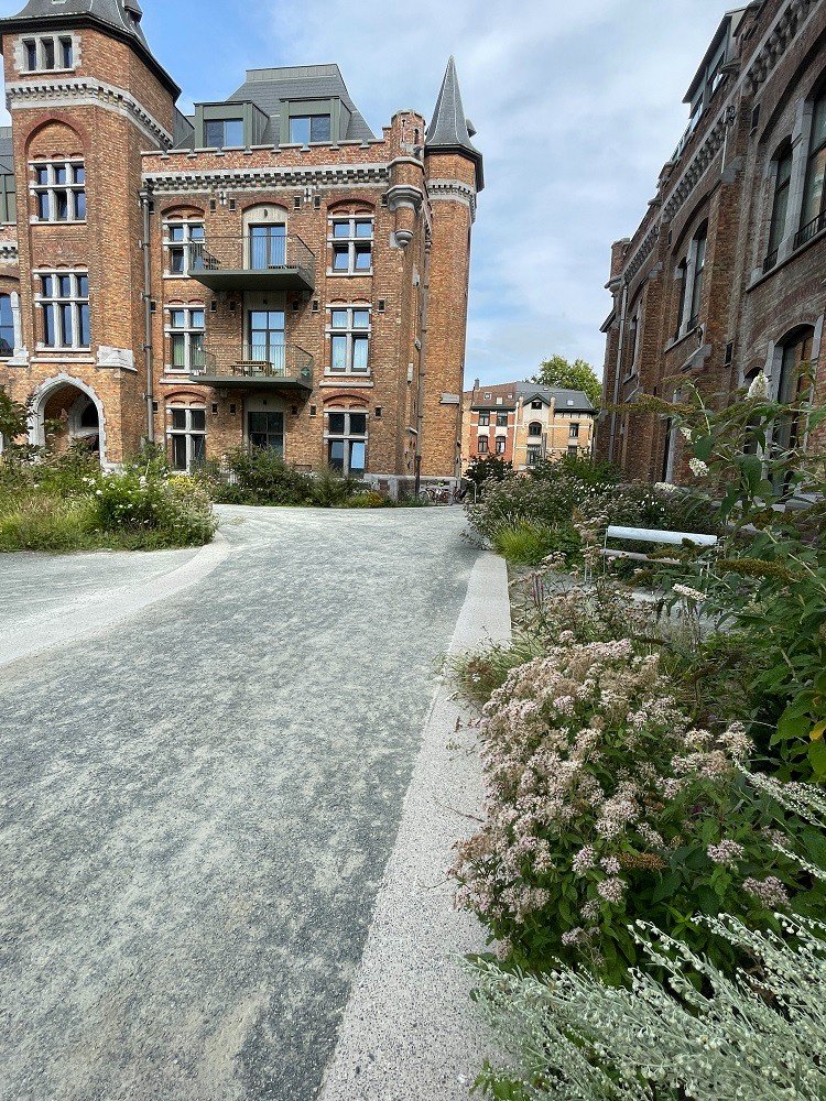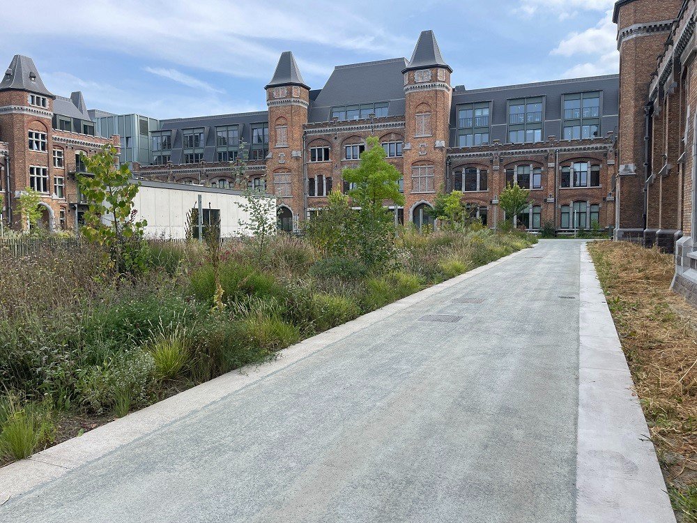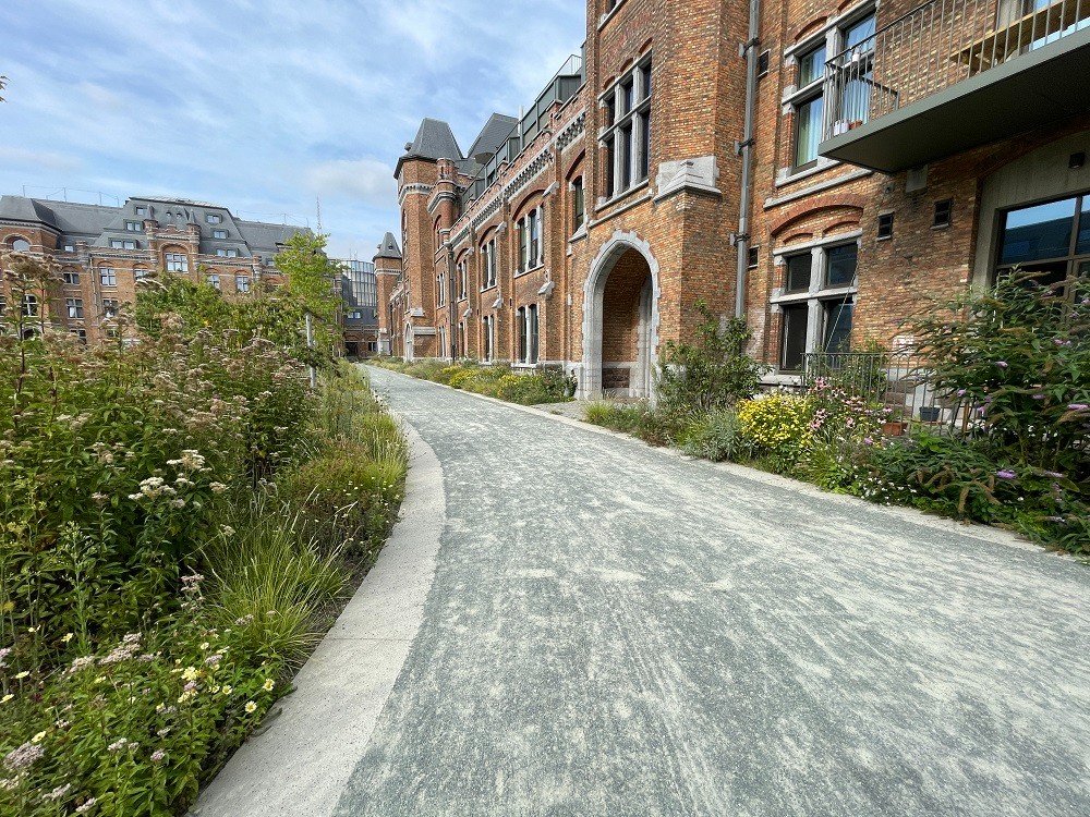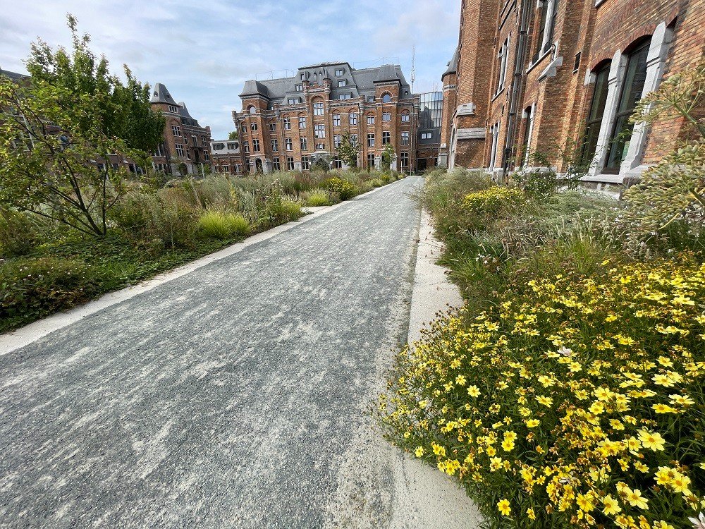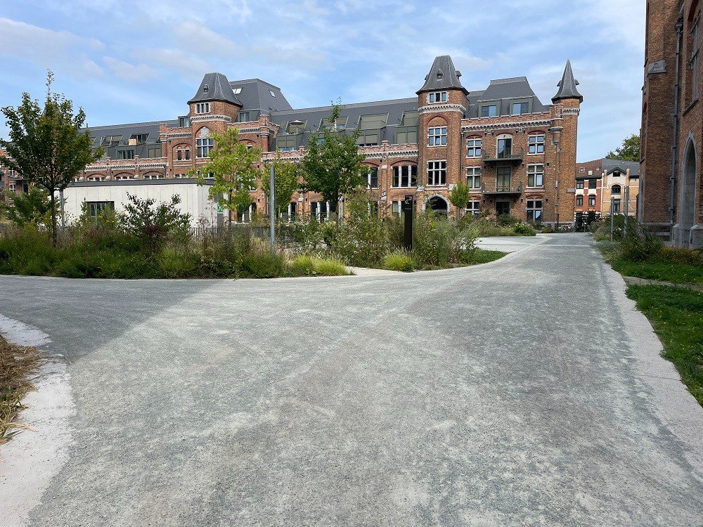 Après avoir été pendant des années une base militaire, le complexe a été transformé depuis 2021 en la nouvelle maison provinciale de Flandre-Orientale, située dans le parc de la Citadelle. Cette transformation combine patrimoine historique et architecture moderne et durable, et crée un quartier urbain animé. Un symbole de la riche histoire de Gand et de son avenir dynamique. Pour la couche de finition des différents chemins, un revêtement semi-rigide gris-vert a été choisi, en harmonie avec la fonction d’origine du site.