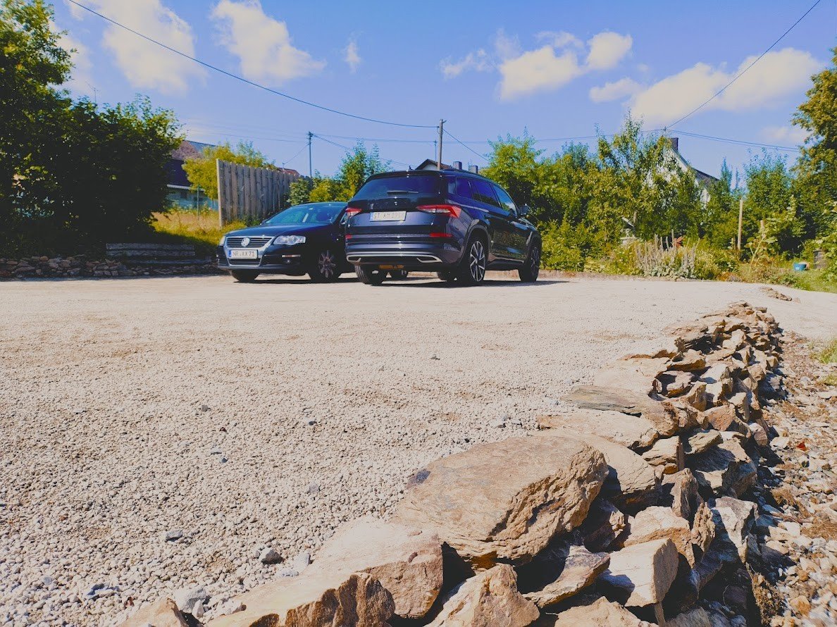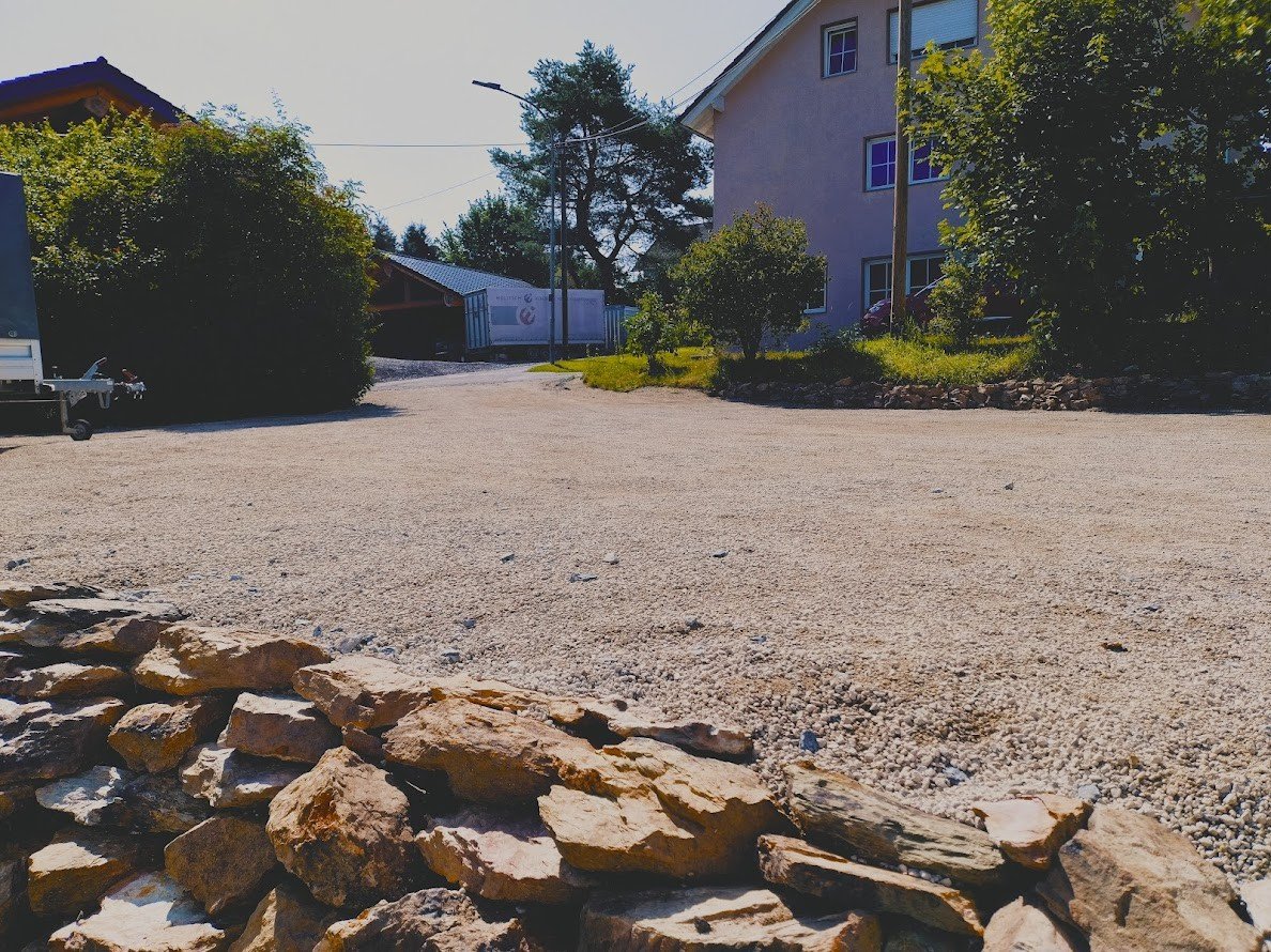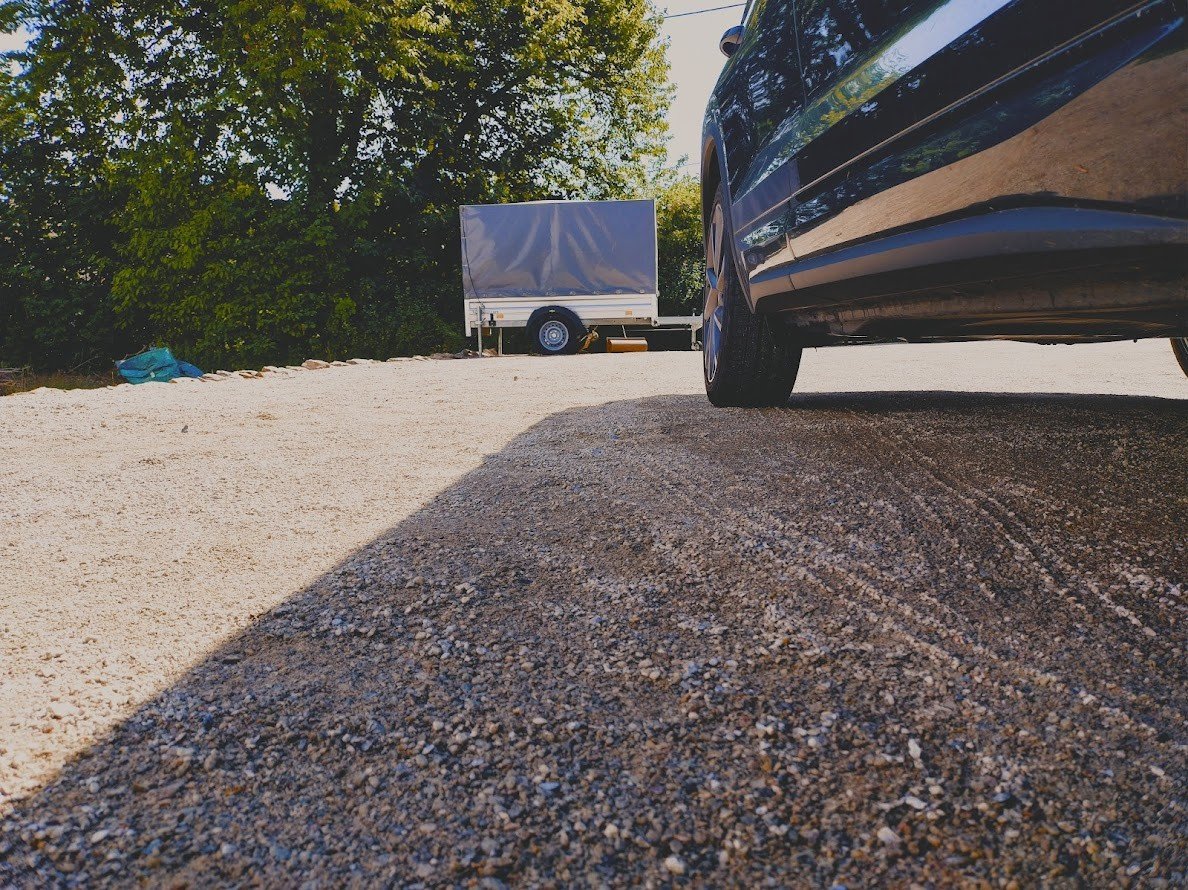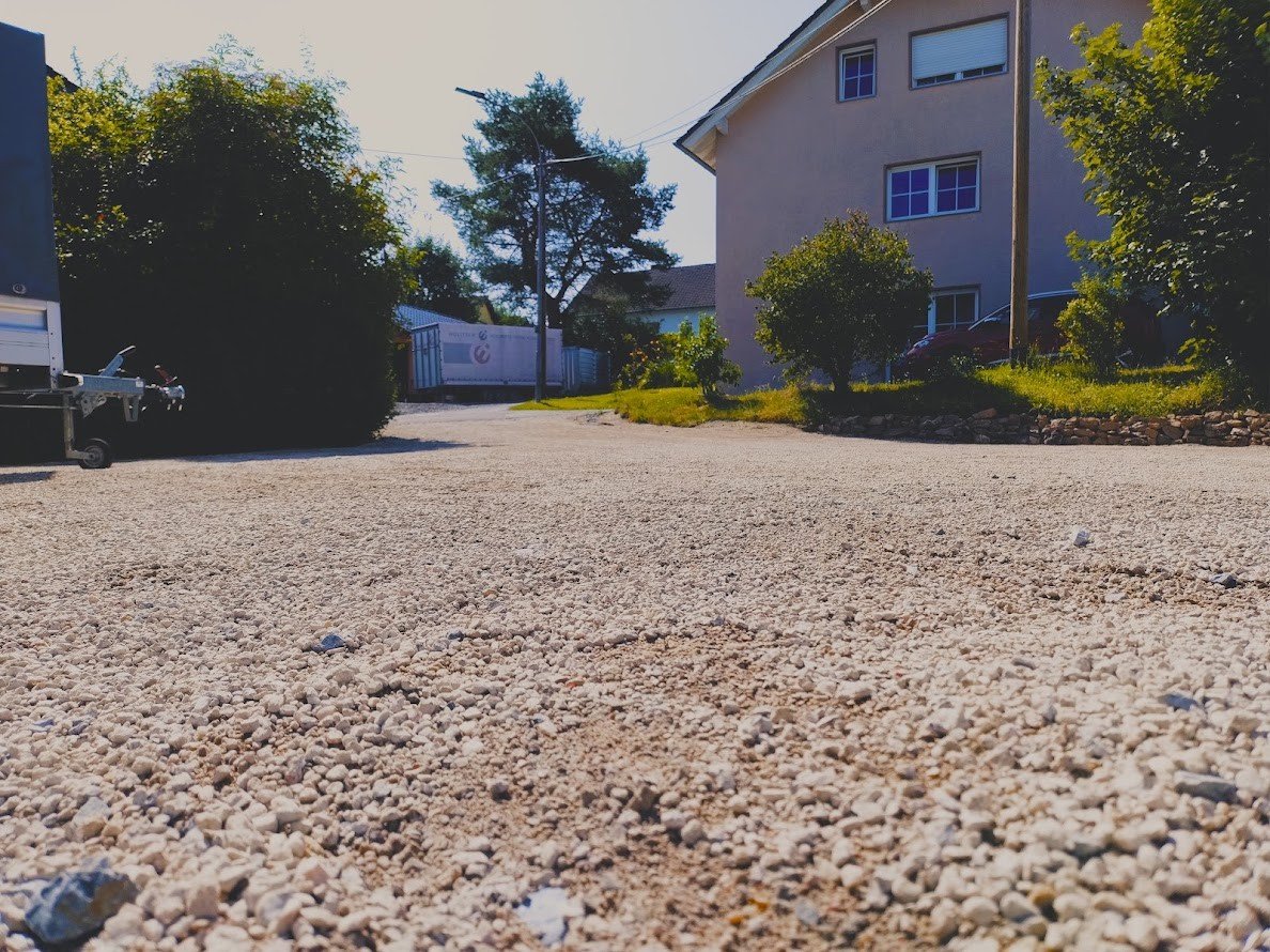 À l'été 2025, une place de parking privée a été réalisée à Niederhofen, dans le Westerwald, devant une maison individuelle avec un logement AirBNB située Schulstraße 6. Le revêtement de surface est en KoMex BIO Naturel, appliqué manuellement et compacté à l’aide d’une plaque vibrante.