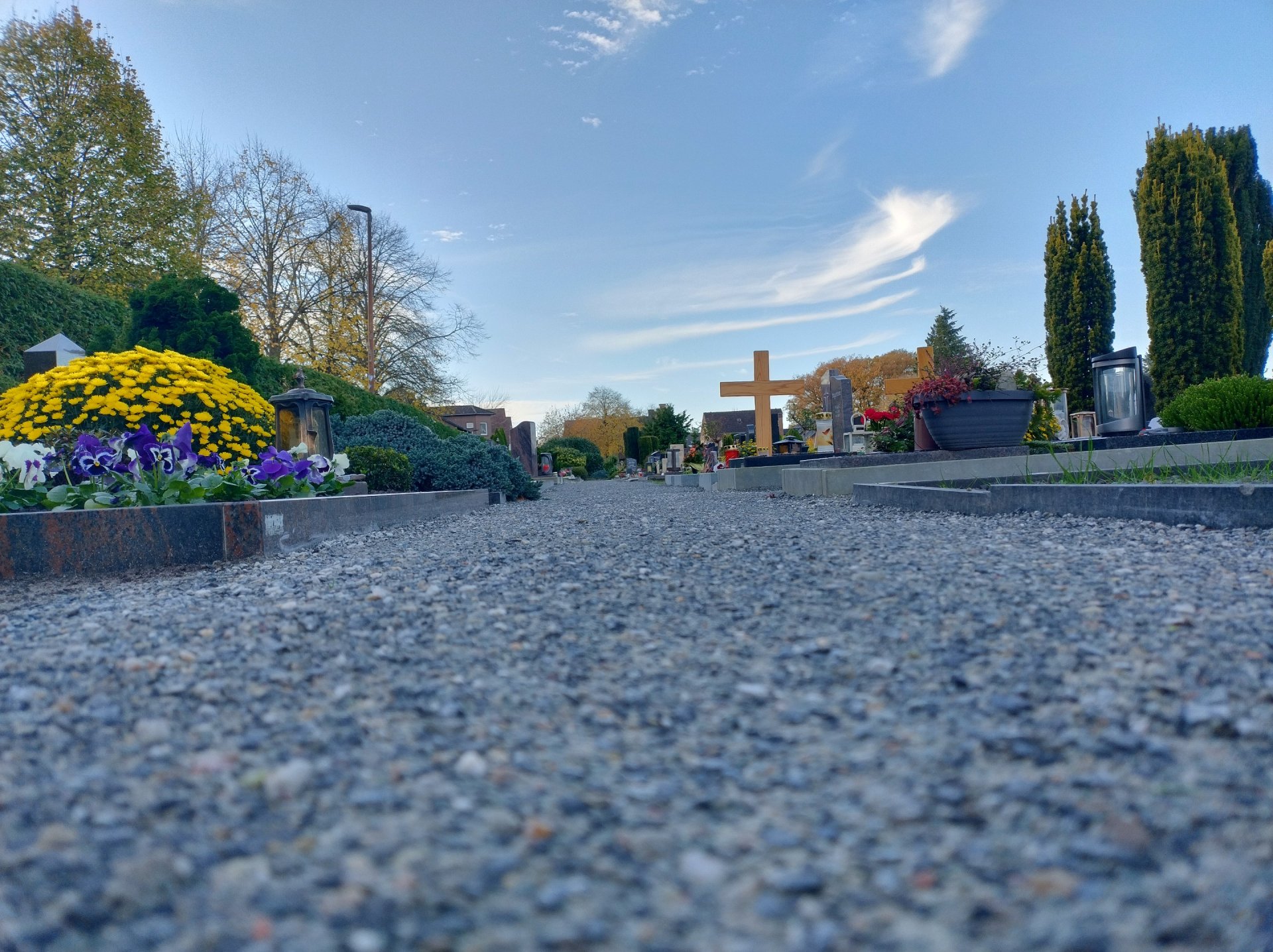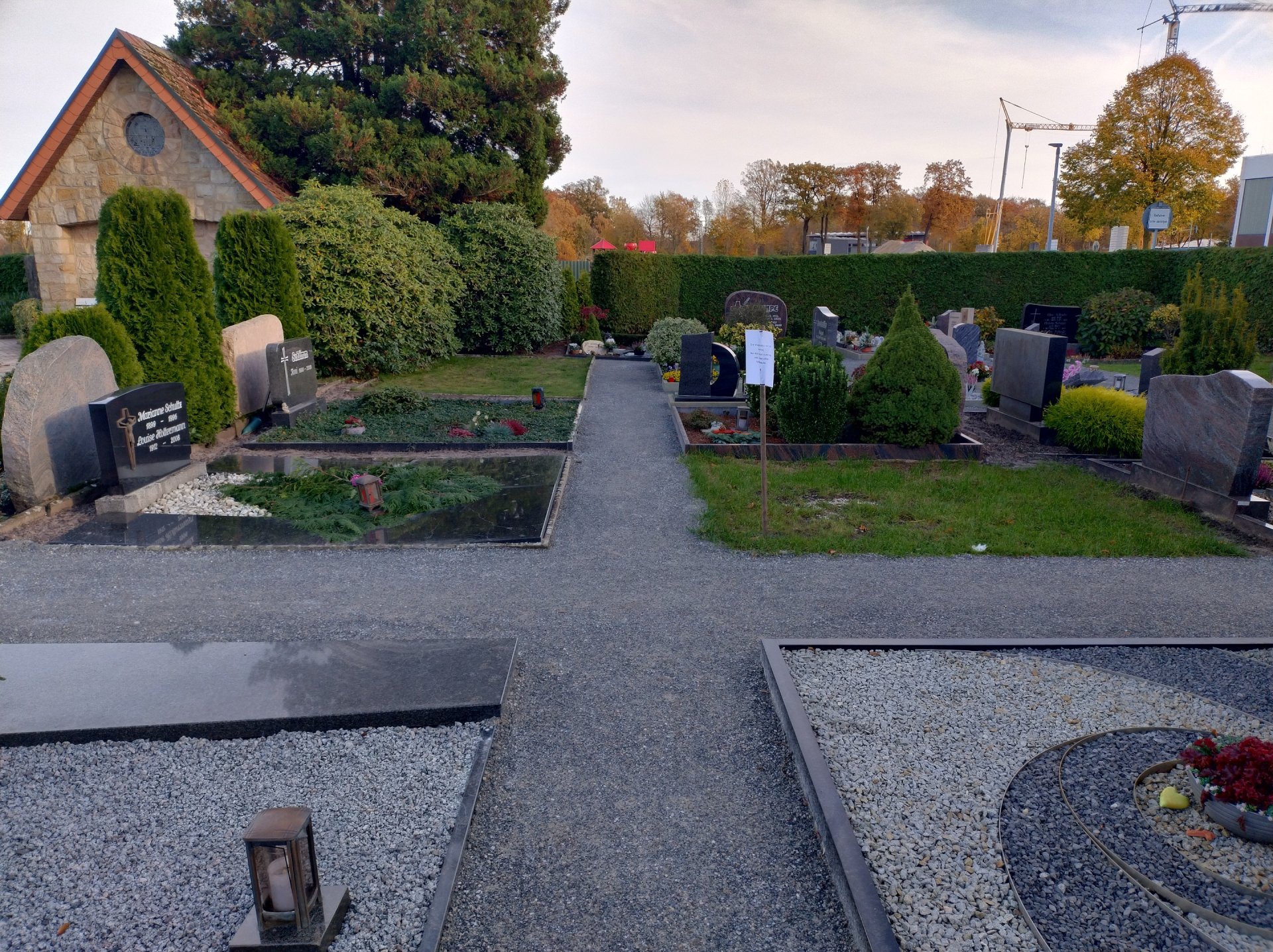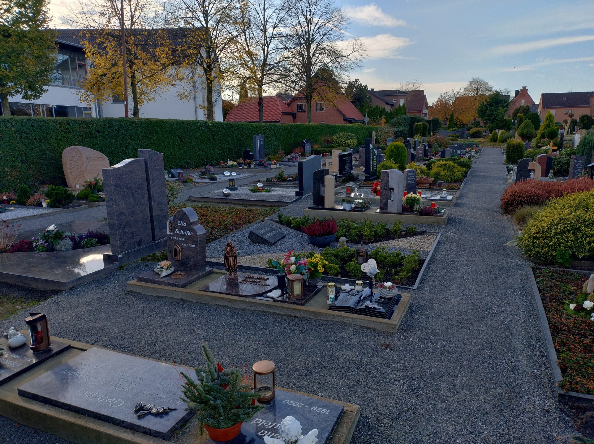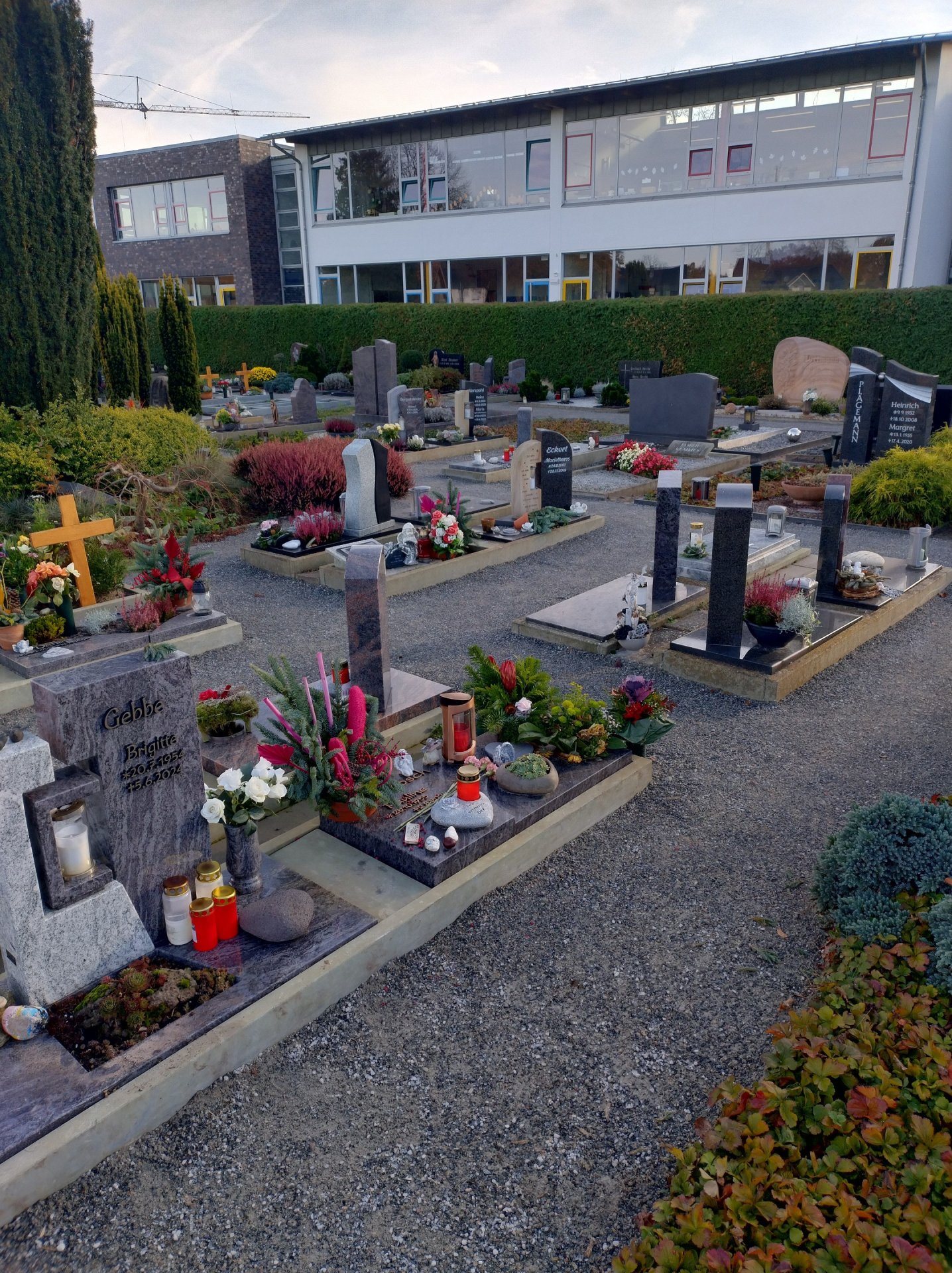 De begraafplaatsaanlegger van het bedrijf Seveneick heeft in september in de zuidoostelijke hoek van de begraafplaats in Hörstel de zones tussen de graven verhard met Koers DurEko-mix. Het resultaat oogt zeer charmant. De grijze kleur van de toplaag sluit mooi aan bij de randafwerkingen van de paden en de graven. De kleuren van de bloemenarrangementen, kaarsen en andere decoraties die bezoekers uit liefde voor hun overleden dierbaren hebben meegebracht, trekken de aandacht en geven het geheel een warme, emotionele sfeer.