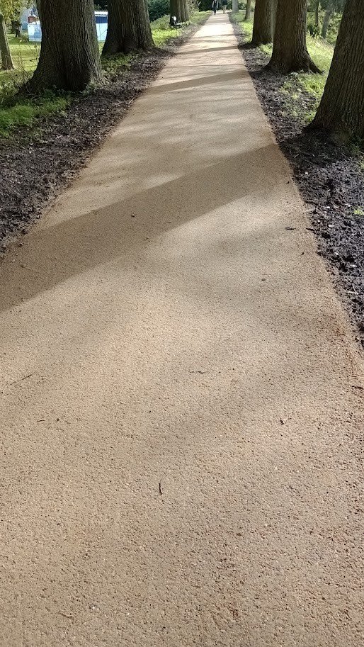 KoMex Gelb bietet darüber hinaus klare technische Vorteile. Das Material ist wasserdurchlässig, sodass Regenwasser in den Untergrund eindringen kann und Pfützenbildung verhindert wird. In Kombination mit der hohen Stabilität ergibt dies eine komfortable und zuverlässige Oberfläche, auch bei wechselnden Wetterbedingungen. Darüber hinaus ist der halbverfestigte Belag weniger anfällig für Schäden durch Wurzelwachstum als der ehemalige Asphaltweg.