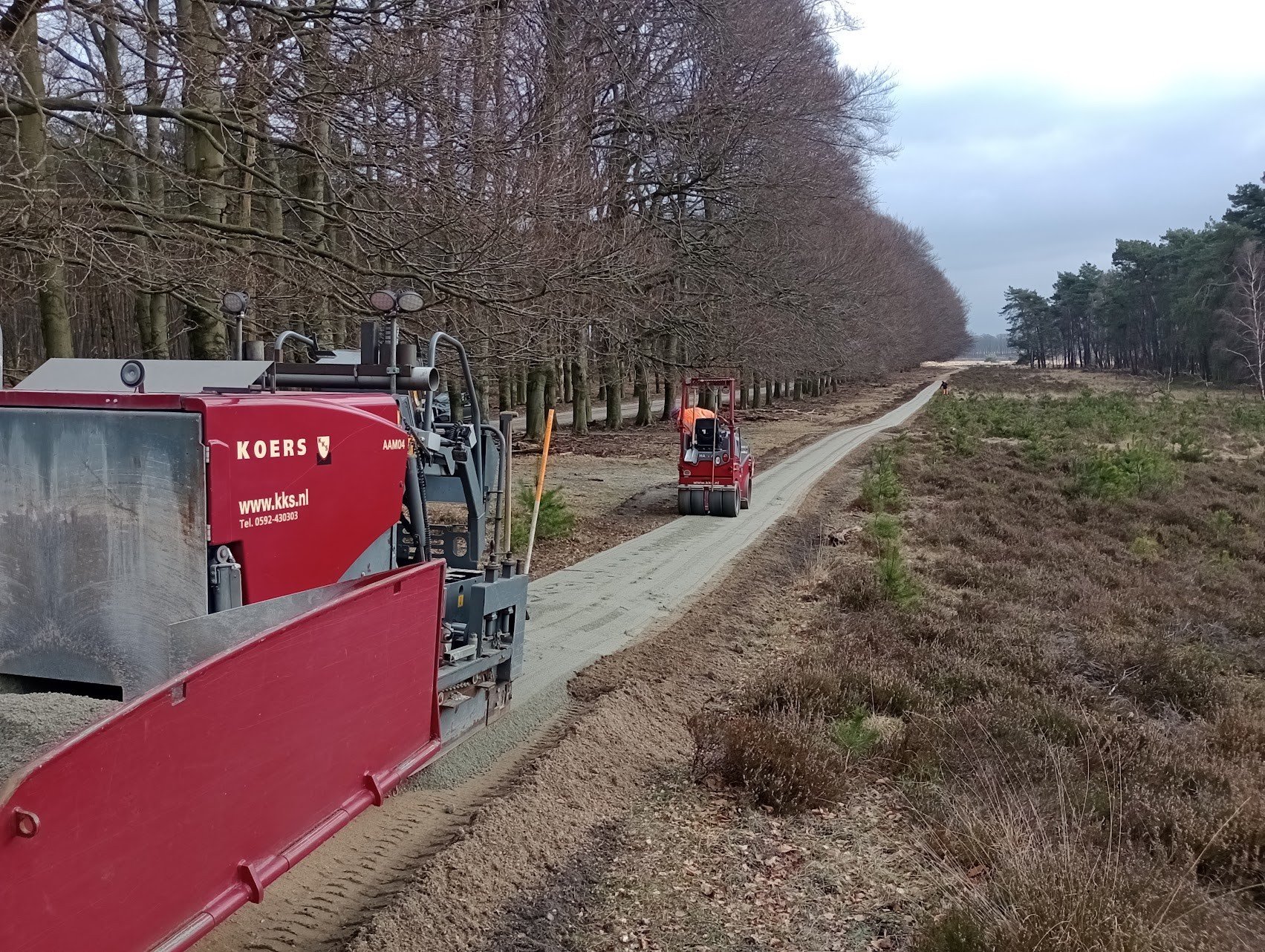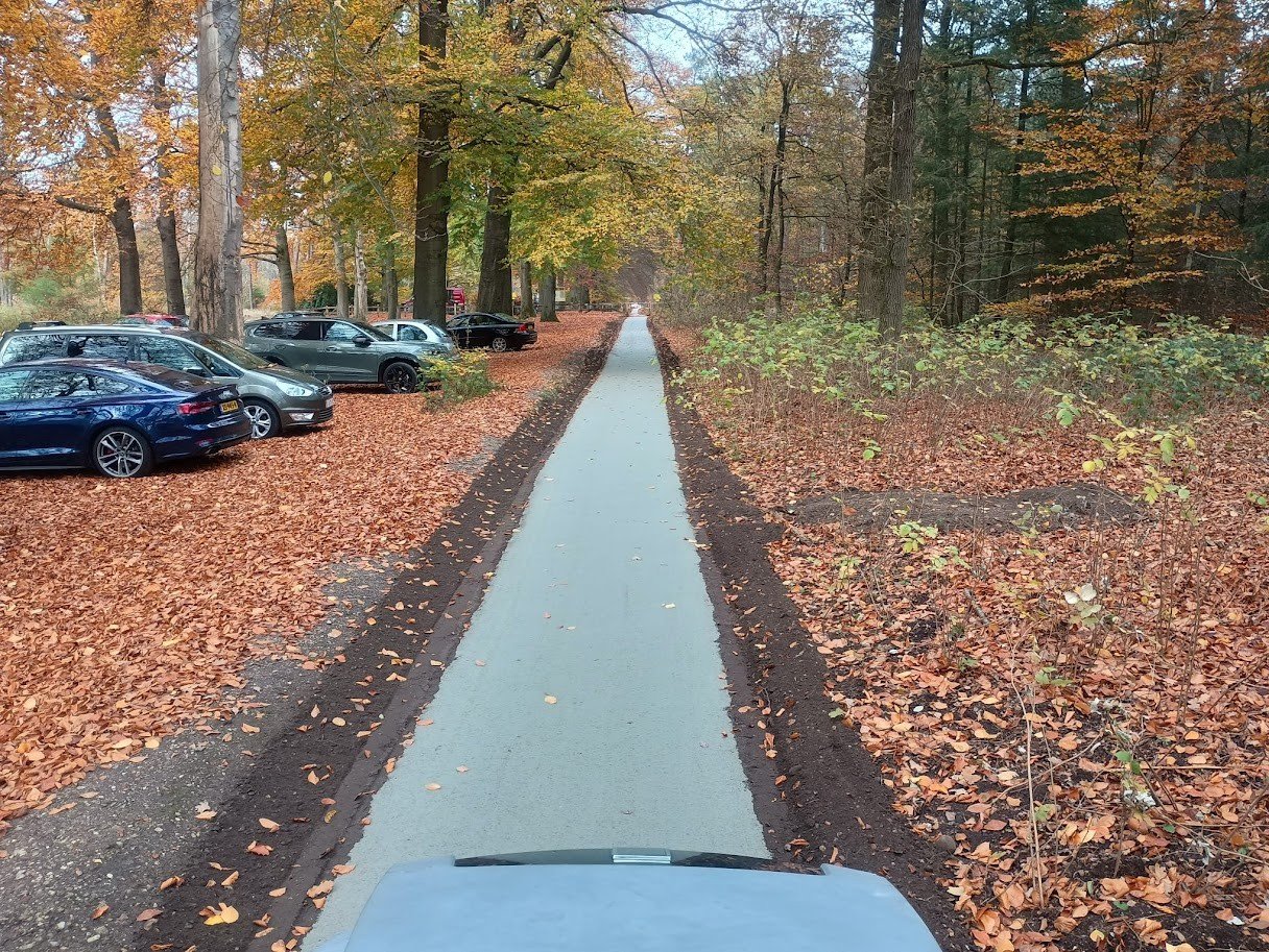 Für den Bau der Radwege wurde bewusst DurEko-Mix gewählt, ein wasserdurchlässiger Halbbelag, der sich hervorragend in eine empfindliche und ökologisch wertvolle Umgebung einfügt. Das Material bietet ein hohes Maß an Stabilität und Komfort für Radfahrer und hat gleichzeitig eine natürlich aussehende Oberfläche, die sich harmonisch in die Landschaft der Veluwe einfügt.