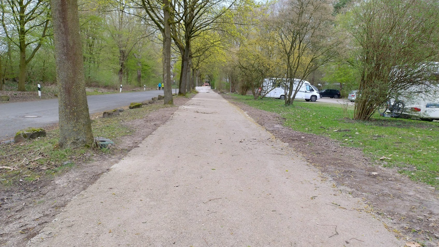 À Münster, de nombreux sentiers et terrains, par exemple autour de l'Aasee, sont rénovés avec des revêtements semi-rigides composés de Koers KoMex Naturel, afin de garantir un aspect naturel alliant une grande stabilité et une bonne perméabilité à l'eau. Sur la piste cyclable et le sentier de randonnée rénovés partant de la Theo-Breider-Weg, une nouvelle couche de finition en KoMex Naturel a également été posée ce printemps.